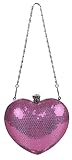 Candy Pink Shiny Sequin Heart Shaped Clutch Evening Bag Handbag w/Chain Strap Feature