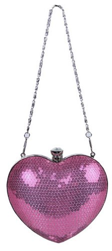Candy Pink Shiny Sequin Heart Shaped Clutch Evening Bag Handbag w/Chain Strap Review