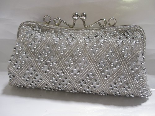 D211C silver Fully Handmade Beaded Evening Wedding Prom Party Handbag Purse Bag Review